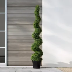 Forever Leaf 60″ Spiral Boxwood In Black Pot (2 Pack), Indoor Artificial Plant For Home Decor