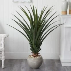 Real spiked agave can hurt, but the only thing sharp about this faux spiked agave is its style. It’s tucked into a minimalist sandy bowl with river rocks, making it look very desert chic. Because it’s faux, this plant is much safer around children than the real thing, making it even more ideal for your entrance, foyer, or porch.