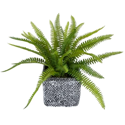 Zest your favorite places with this elegantly designed Boston fern in a distressed square black tin pot to elevate your home decor. This lively accessory is a must buy element for a refreshing setup. This irreplaceable plant decorative is available to suit your needs and match your decor.Product Features:This gorgeous Boston fern offers the beauty of greenery without the upkeepExtremely realistic plant is nestled in a black, distressed, tin pot with a lattice designFern is set in faux dirt that adds to the natural lookBase of stems are wired for easy positioningOverall dimensions: 20″ high x 30″ wide (at widest point) Pot dimensions: 8″H x 8″W x 8″LMaterial(s): tin/plastic/wire/fabric