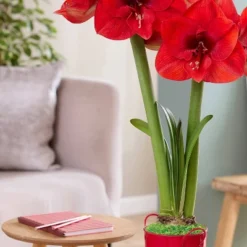 Van Zyverden Fast Track Amaryllis Bulb Kit Double Time With XL Artisan Decorative Planter