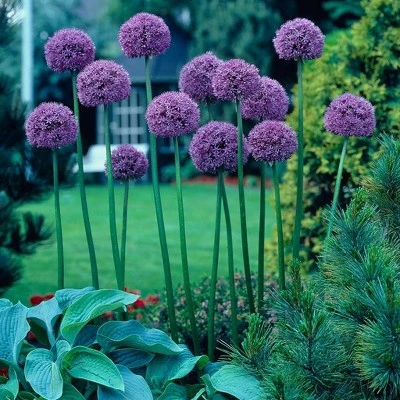 Alliums are in the same family as garlic, onions, chives, and shallots. This makes gardeners wonder if they should include them in their ornamental gardening plans, as it conjures up images of supermarket produce. But because good garden designs are often made up of different shapes, Alliums rounded blooms make for high drama and interest in the garden. The Allium group gets more popular annually, from over 300 species to choose. They amaze everyone, and few plants create this kind of wow in the garden. We will be adding many new varieties shortly. The blossoms of Gladiator are as large as soccer balls atop tall stalks and the big stars of the late spring garden.