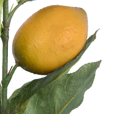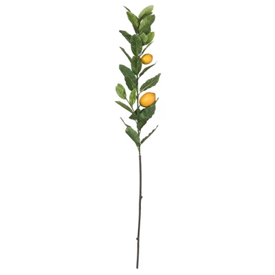Vickerman Artificial Lemon Branch featuring deep green Leaves and rea;ostoc Lemons. Add texture and depth to your Decor with this beautiful branch.